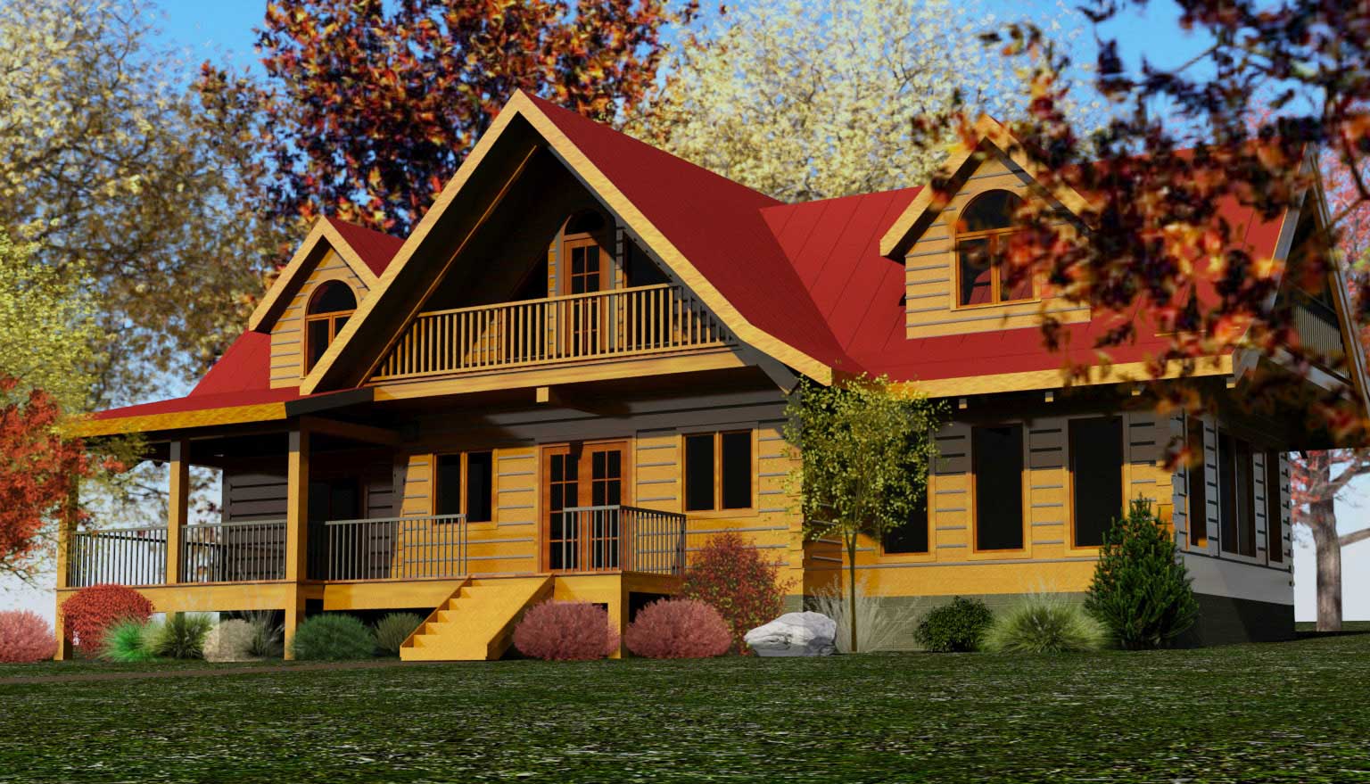 With the master bedroom on the main floor this floor plan design is often chosen by customers who need a recreational cottage, which they can later use as a retirement home.